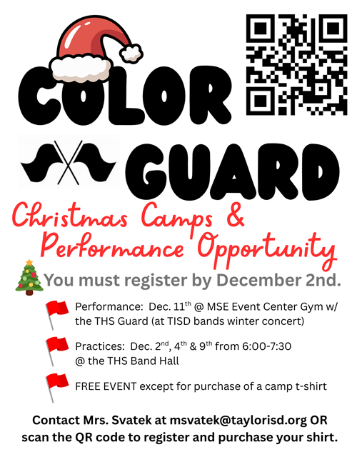 Thurs 3/5 • Varsity & JV WG practice 5:15 to 8:00pm - JV Dress Rehearsal🏆 Sat 3/7/26 • JV & Varsity Winterguard TECA Contest, Seguin HS